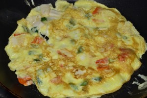 As the omelette begins to set, lift up edges with egg flipper so uncooked portion of egg can flow under the cooked portion.